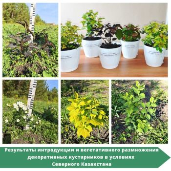 В рамках задачи «Выявление потенциала адаптивности новых декоративных кустарников и их способности к вегетативному размножению в условиях Северного Казахстана» сотрудниками отдела интродукции были проведены опыты по вегетативному размножению 18 видов и сортов декоративных кустарников с применением стимуляторов роста. Из укорененных черенков был получен посадочный материал однолетних саженцев в количестве тысячи пятисот штук растений. В начале вегетационного периода 2025 года саженцы были высажены в открытый грунт на территории питомника института на площади 6,6 соток, а также переданы в питомник филиала «Северный регион» республиканского лесного селекционно-семеноводческого центра и высажены на площади 6 соток. В течение сезона растения образовали прирост, сформировали крону из новых побегов, а у некоторых сортов наблюдалось цветение. В результате осеннего учета растений в питомниках было установлено, что приживаемость по всем видам и сортам в среднем составляла 80 %. Высота растений была в пределах от 11 до 54 см, при диаметре корневой шейки от 2 до 8 миллиметров в зависимости от вида и сорта. Полученный результат свидетельствует о возможности успешного размножения декоративных кустарников исследуемых видов и сортов и возможности культивирования в открытом грунте в условиях резко континентального климата Северного Казахстана. По результатам научно-исследовательских работ получен акт внедрения в производство.